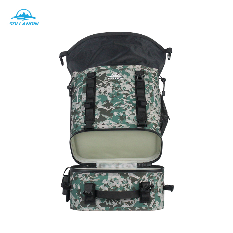 * The cooler backpack adpot unique double-layer structure,the upper layer is roll top closure for easy acess and maximum storage,the lower layer is for 100% leakproof insulated for drinks and food.